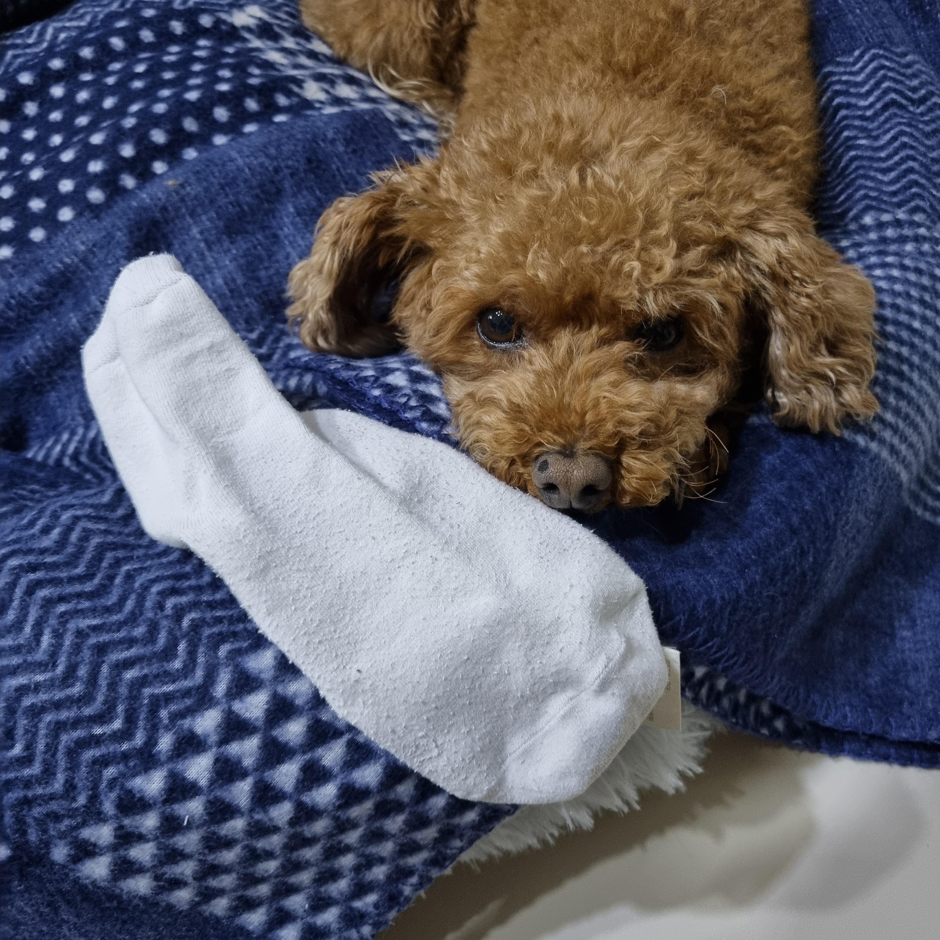 강아지는 때때로 불안하거나 스트레스를 받을 수 있다. 강아지는 불안하거나 스트레스를 받을 때 양말과 같은 물건을 씹는 행동을 하여 안정감과 스트레스 해소를 할 수 있다. 양말은 부드럽고 안정적인 대상으로서 강아지가 스트레스를 풀거나 안정감을 얻을 수 있는 도구가 될 수 있다.